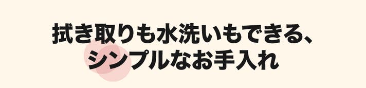 ウェットティッシュでの拭き取りや、水洗い後の乾燥など、シーンに合わせたお手入れが可能。