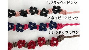 ②と③は6文字までアルファベットパーツを編み込むことができるので名前入りのストラップになります。
