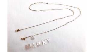 ストラップを前に下げればネックレス、揺れるイニシャルがイヤリングやピアスのように見えます。