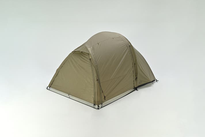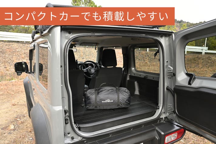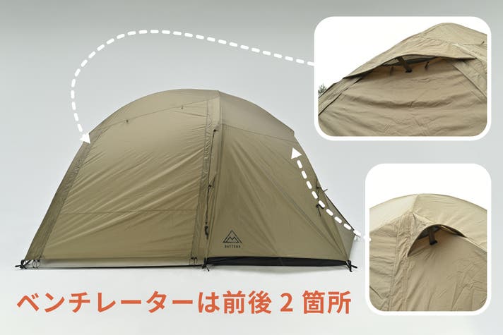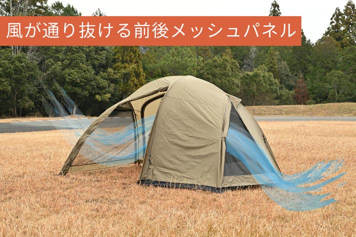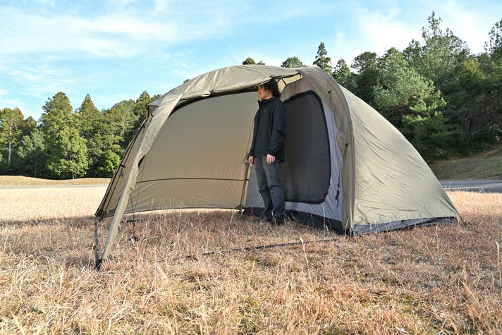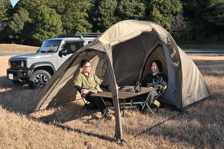 バイクキャンプで磨き上げてきた軽量・コンパクト設計と設営のしやすさをそのままに、ジムニーなど積載量の限られた車でのキャンプでも快適に使える高天井と居住性を追求したドーム型2ルームテントです。