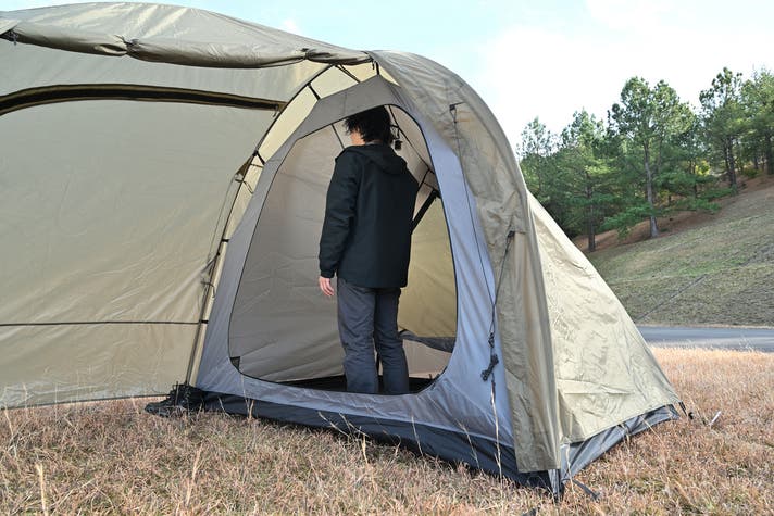 積載しやすく、設営はシンプルで、立って動ける高さと、前室の余裕があること。