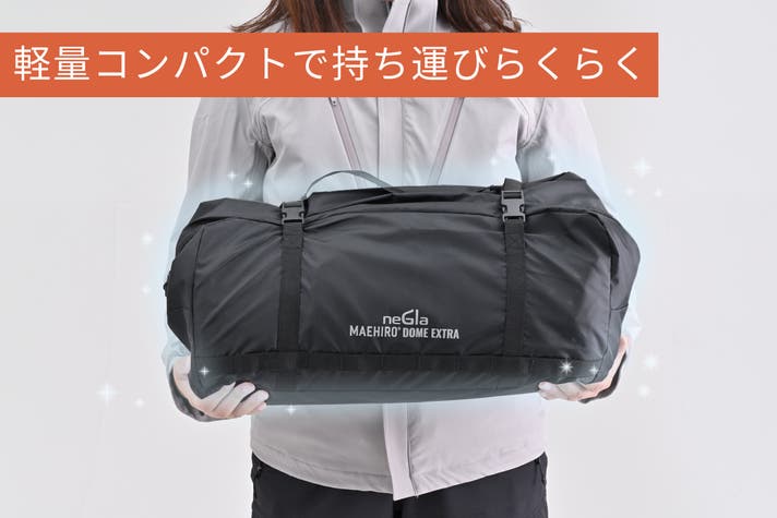 『広くて快適なテント=収納時は重くて大きい』というイメージを見直し、