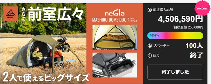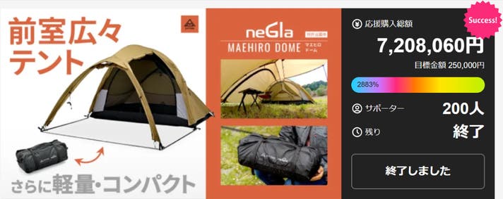 Makuakeプロジェクトでもsuccessしており、多くのお客様から支持されているドーム型テントです。