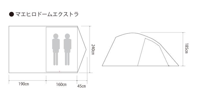 マエヒロドーム エクストラは、軽量コンパクト性に加え、天井高のある居住空間と、前室を含めた広く快適な空間づくりを重視して設計しています。