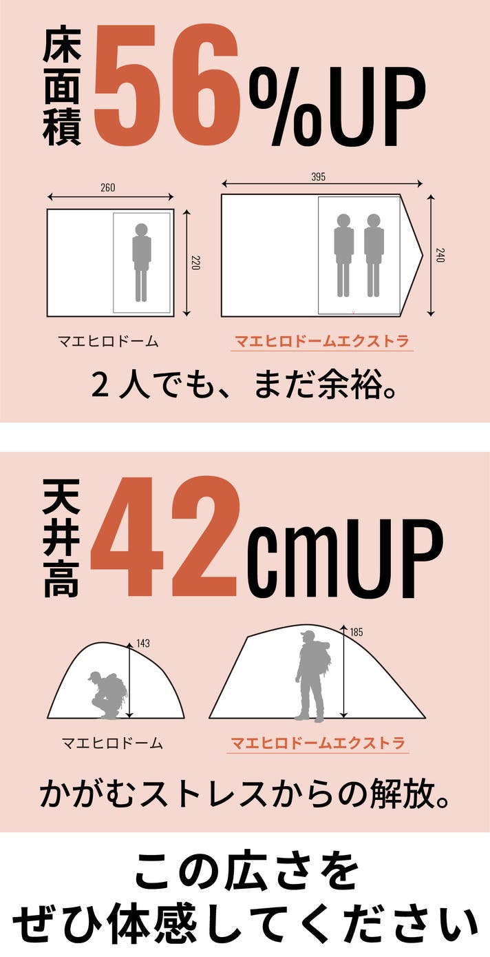 「前室の広さ」「快適な居住性」「設営のしやすさ」はそのままに、