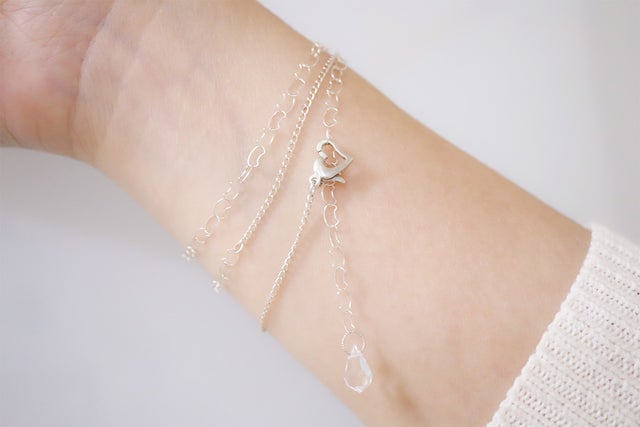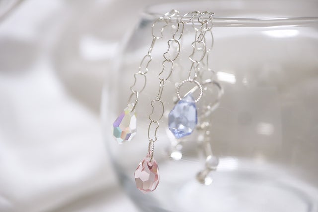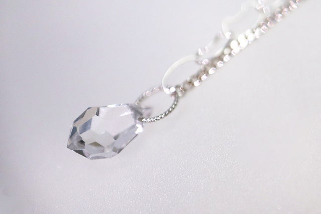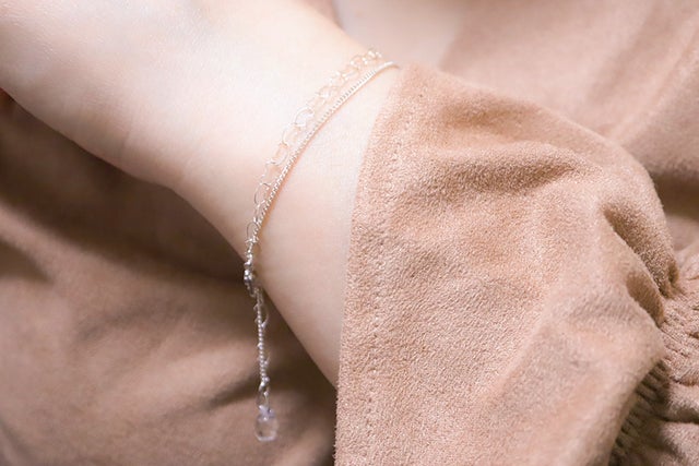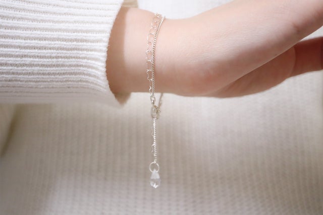 少し長め(約19.5cm)にしたチェーンの先には着用時にチェーンが滑り落ちないよう重りの役割を果たすプレシオサクリスタルをつけてキラキラと☆