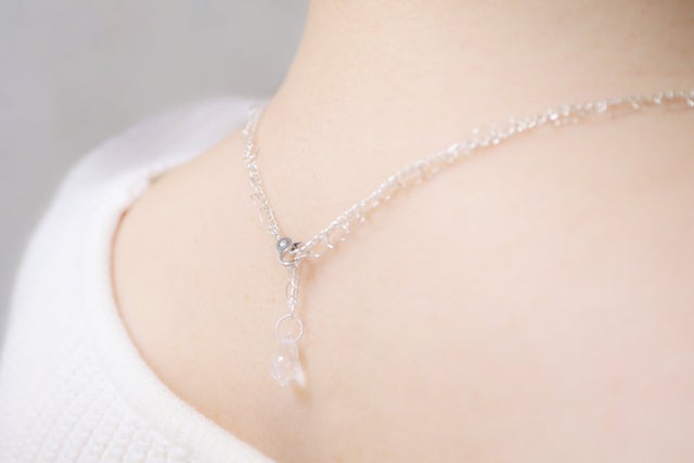 - ロングネックレスはブレスレット。ショートネックレスはY字デザインにも変化
