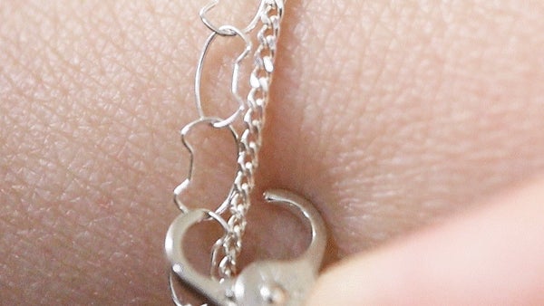 ビックリするほど大きく開くフックで楽々装着!小さい手錠の様な可愛い見た目のフックは思った以上に大きく開くのでイライラしません。