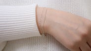 猫モチーフと合わせた細いながらも重厚感ある喜平の2面ダイヤカットチェーンが手首を可憐に美しく見せます。