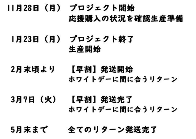 ※皆様の応援購入により量産効率が向上した場合、正規販売価格が販売予定価格より下がる可能性もございます。
