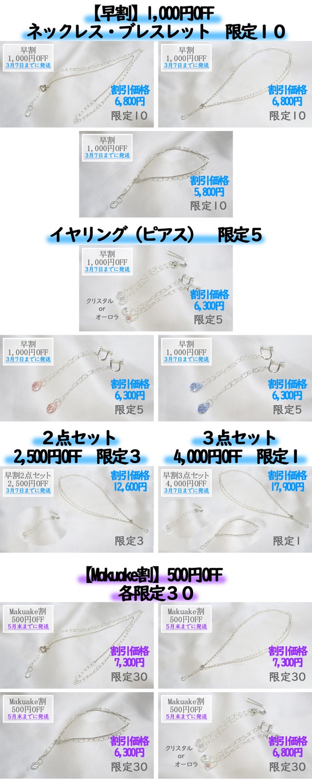 カラー:クリスタル(オーロラへ変更可)、ライトローズ、ライトサファイア