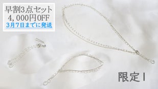 ・ネックレス(ロングor2連ショート)1、イヤリング(ピアス)1ペア、ブレスレット1、ケース3、保証書3、プレゼント(セーム革1、変色防止パック3)