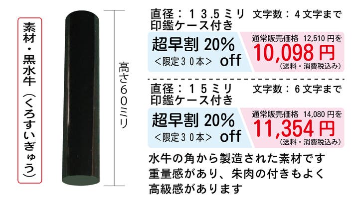 【超早割・20%OFF】 黒水牛・13.5ミリ