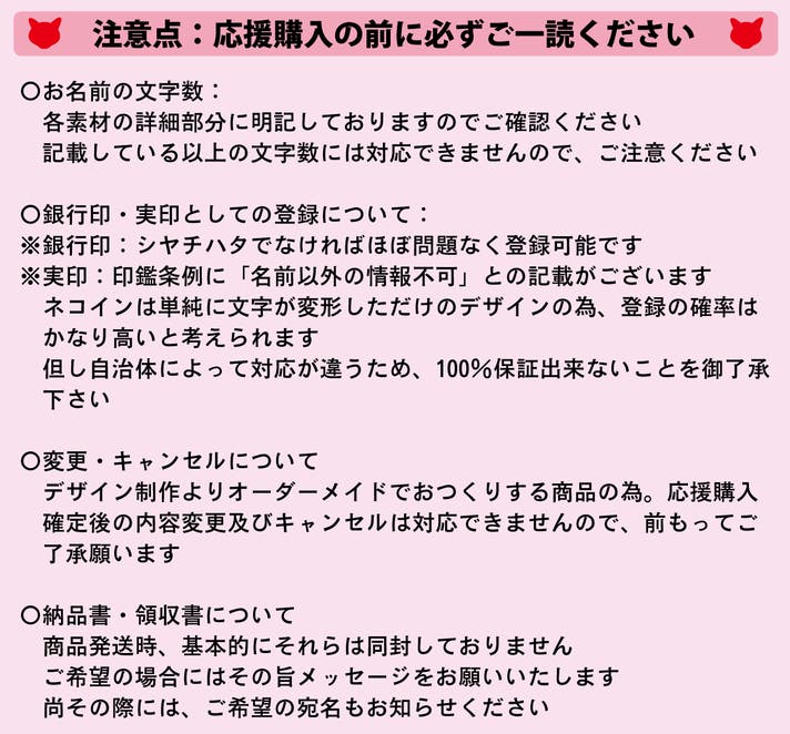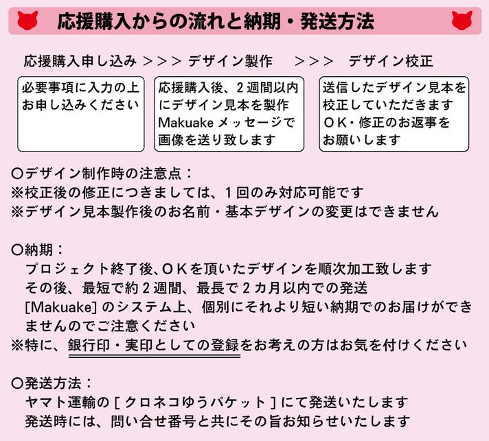 ※応援購入画面の備考欄に、ハンコ本体ご購入時の『注文ID』を必ずご記入ください。