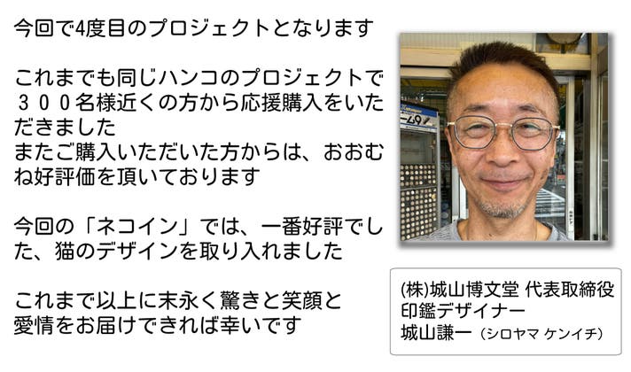 - 前回プロジェクトの印鑑「ラブイン」の猫バージョン、猫好きさん垂涎です