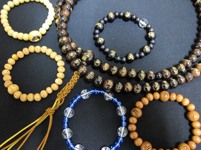 一玉一玉が人間の煩悩をあらわし、持つ人の身を守る珠数。当店が心をこめて手作り致しました珠数を、どうぞ大切にお使い下さい。
