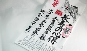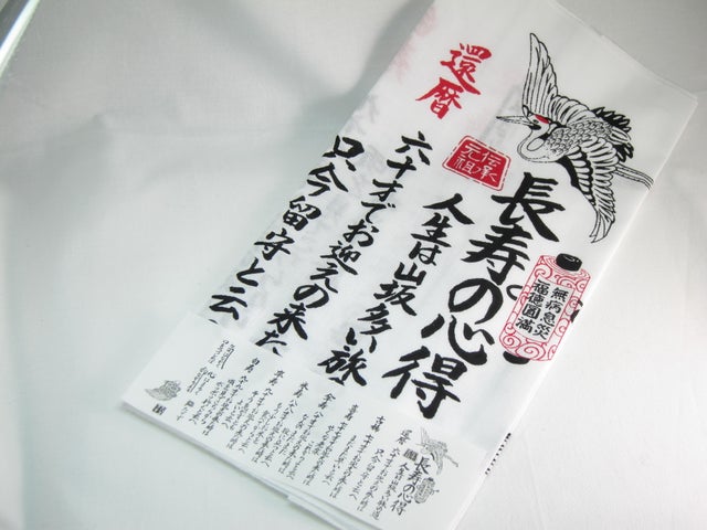 お礼メール+商品紹介HPのお名前記載+日本手拭い「長寿の心得」