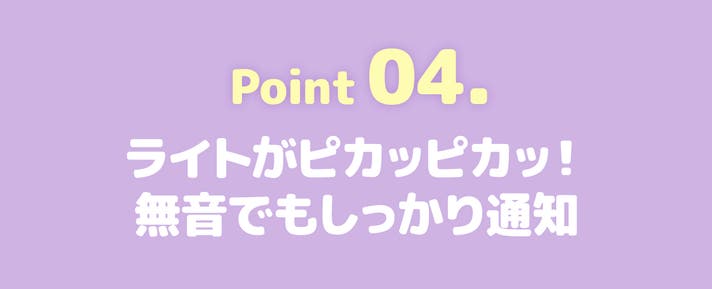 アラーム音を鳴らせない環境でも、時間になったことをライトでおしらせ。ピカピカと点滅し、無音モードでもしっかり通知します。