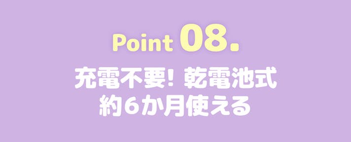 また、充電式の製品に見られるような経年劣化によるバッテリー消耗の心配がないため、長期に渡って安定してお使いいただけます。