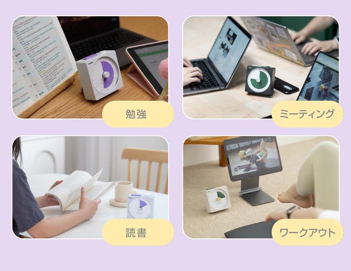 まだ時計が読めないお子さま、時間管理が苦手な受験生、そして時間をもっと有効に使いたい大人まで。誰にとってもわかりやすく、直感的に使える──「見えるタイマー」は、すべての人の時間管理をサポートします。