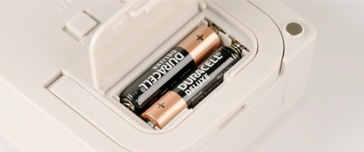 単4乾電池2本で動作。バッテリーを内蔵しないため充電の手間がなく、電池を交換するだけで長く使い続けられます。1日3回の使用で約6ヶ月間(約600回)の使用が可能です。