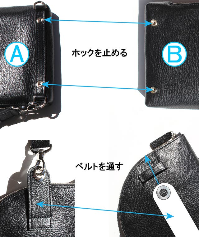 Ⓐのショルダー付きボディバッグとⒷのクラッチバッグを一体化する