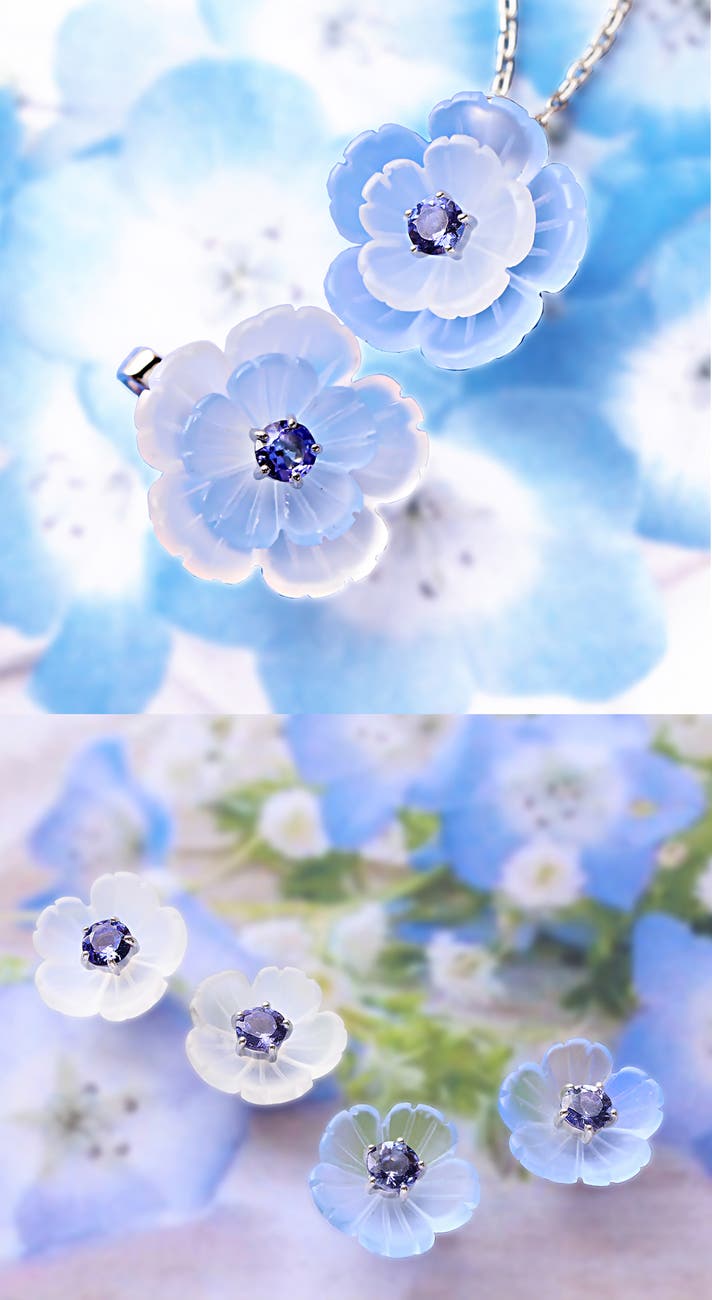 タンザナイトの「瑠璃華心ネモフィラピアスとネックレスを1セット
