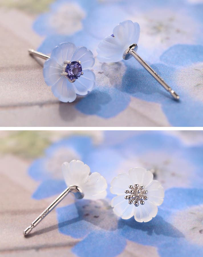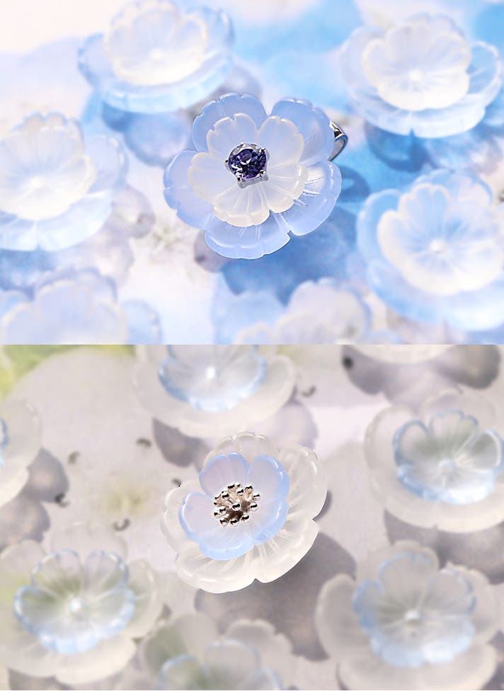 - 【やわらかな光を纏う】ピュアな人工水晶に、ネモフィラの淡い色合いを表現するつや消し加工。