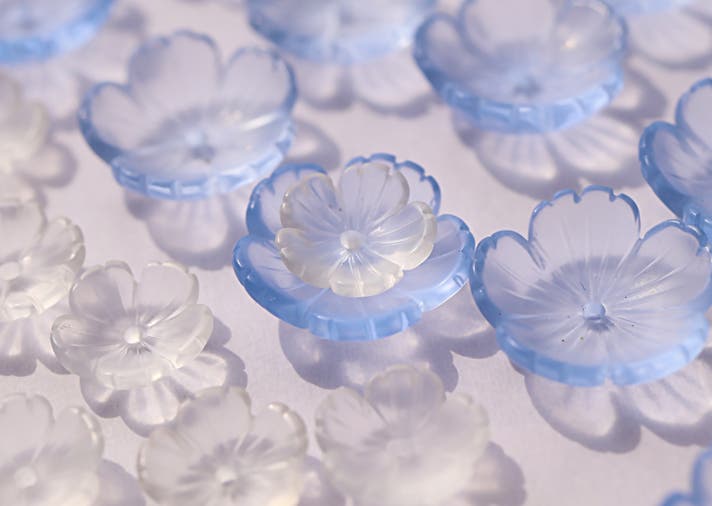 ネモフィラの淡い色合いを表現するため、ピュアな人工水晶につや消し加工を施しました。 光を直接的に反射させず、まるで春の陽だまりのような優しい光を放ちます。この「やわらかな光」が、あなたの日常にそっと寄り添います。
