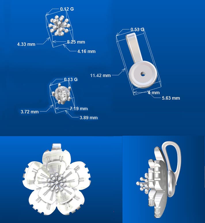 このピアスもペンダントと同様に、繊細な細工により花びらが回転する特別な作りになっています。