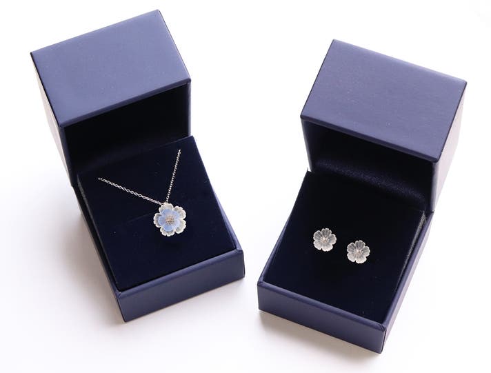 地金の「銀華心」 ネモフィラピアスとネックレスを1セット