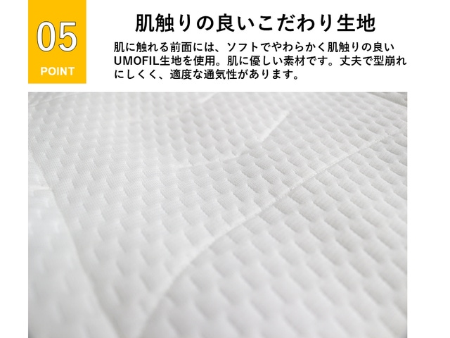 Point1の数値は枕自体の高さではありません。商品一つ一つを全て要件定義した条件で沈み込みの測定登録を別途行い、お客様の理想の高さに対して的確にマッチングできるようにしております。