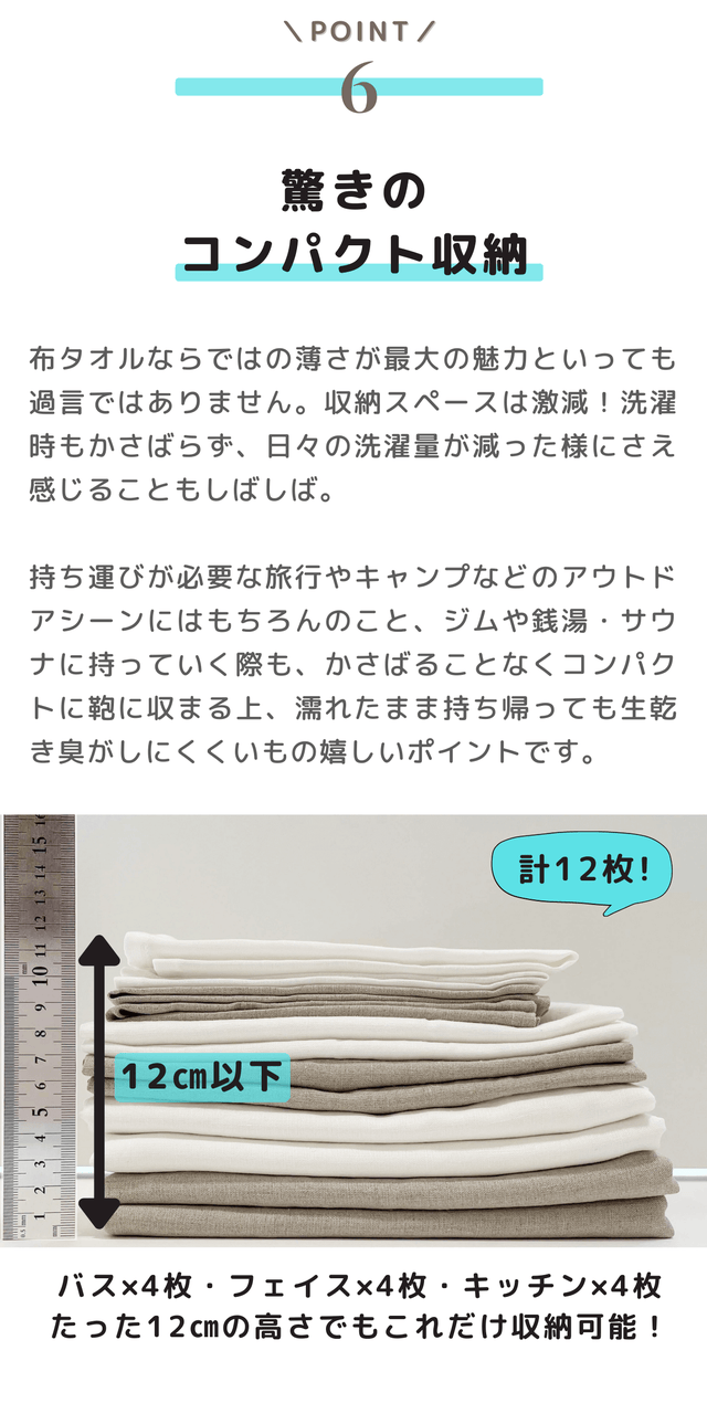 - 極薄なのに、超多機能!大きくてかさばるタオルの問題を解決!