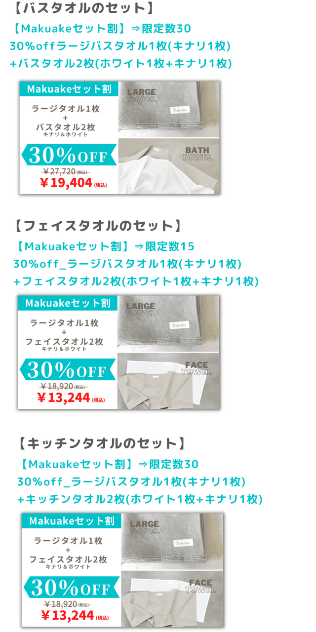 【Makuakeセット割】30%off_ラージバスタオル1枚+フェイスタオル2枚