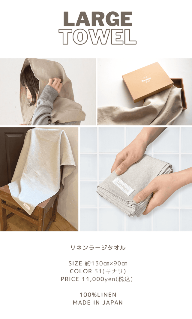 ラージバスタオル1枚(キナリ1枚)+バスタオル2枚(ホワイト1枚+キナリ1枚)