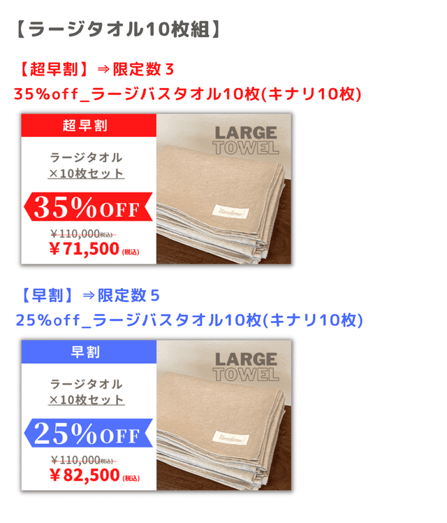 【超早割】35%off_ラージバスタオル10枚(キナリ10枚)