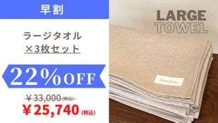 【早割】22%off_ラージバスタオル3枚(キナリ3枚)