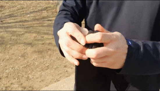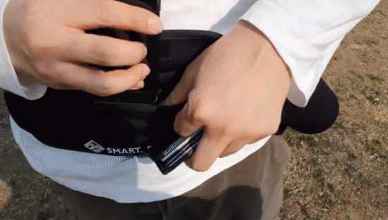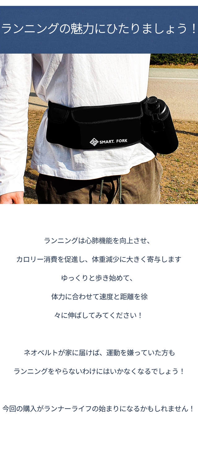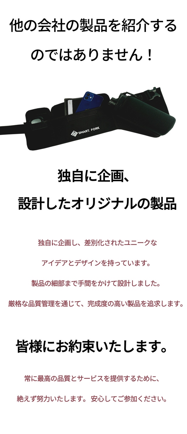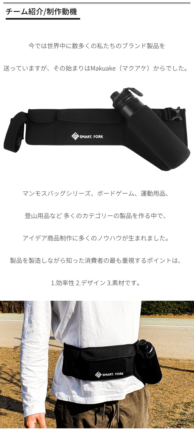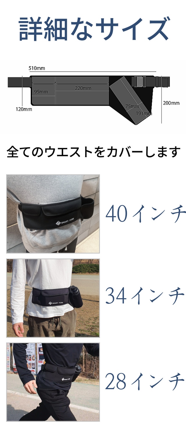 "水筒、スマートフォン、イヤホン、財布、タバコ。ランニング中に全てを携行するのは全く問題ありません。ポケットがぶらつく心配はこれで終わりです!