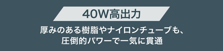W(ワット)数=電気出力は、そのまま“切れ味”に直結します。40Wのコードレス最高峰の出力を誇るからこそ、3mmアクリル、8mm合板、多芯ケーブル…