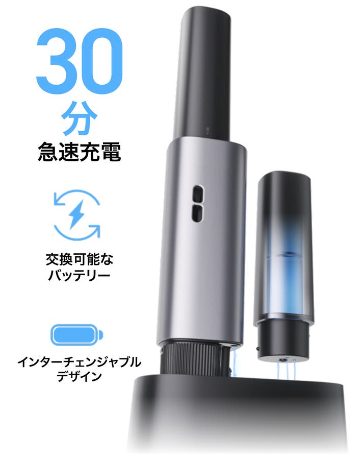 バッテリーの充電時間は、たったの約30分。専用の置くだけ充電スタンドを使えば、作業の合間にサッと充電が完了します。「使いたいときにバッテリーが切れている」というストレスから解放されます。
