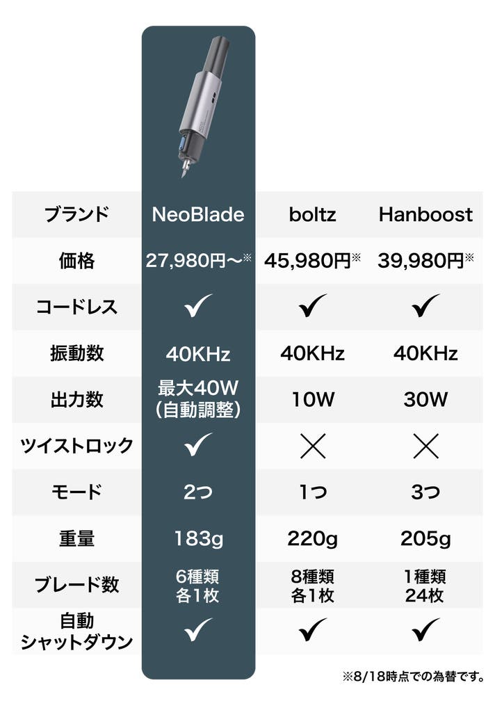 - 【毎秒4万回の超音波振動×40Wのハイパワーモデル】カーボンすら切れる切断力を183gで実現