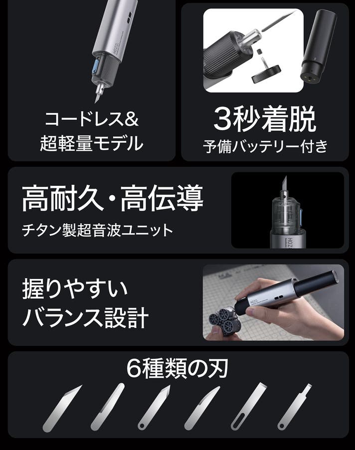 - 【毎秒4万回の超音波振動×40Wのハイパワーモデル】カーボンすら切れる切断力を183gで実現