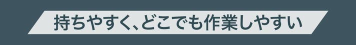 コードレスだから作業中にコードが邪魔になることもなく、屋外や現場でもすぐに使える機動性の高さが特長です。