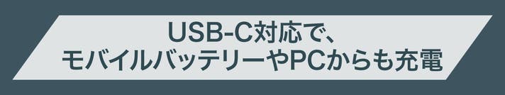 スマホやタブレットと同じ規格なので、専用ケーブルを持ち歩かなくても、汎用性の高い充電環境で対応できます。