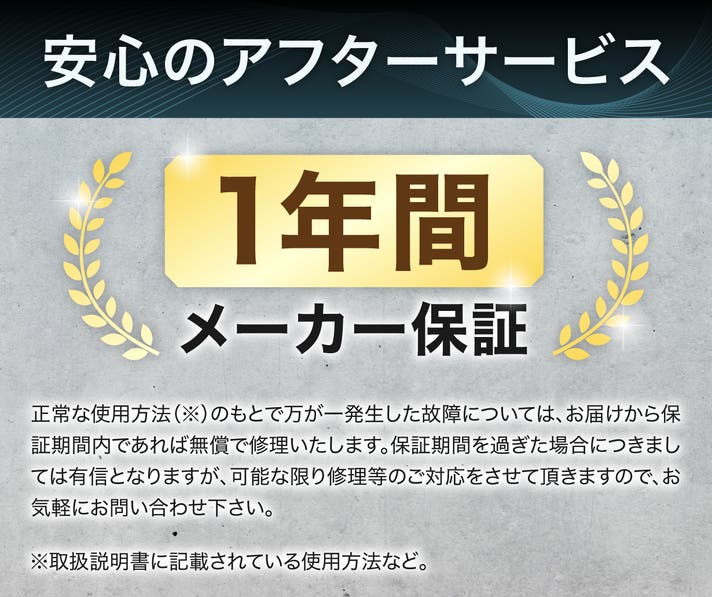 A. はい。お届け日から1年間の製品保証をお付けしております。