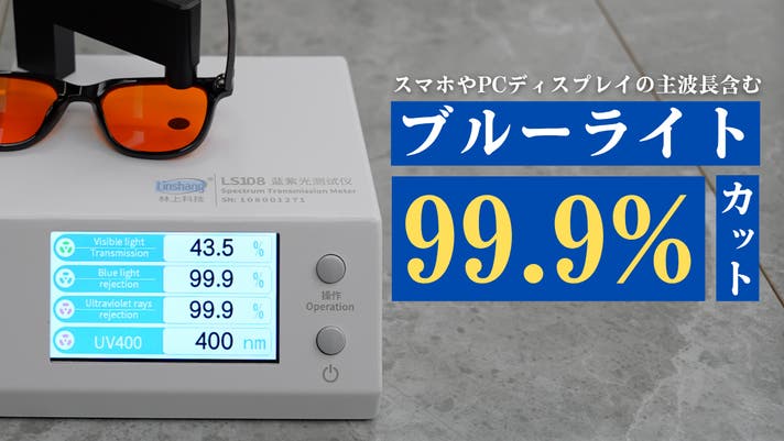 ・ブルーライト全体(380〜500nm)でも99.9%カット(自社スペクトル測定)