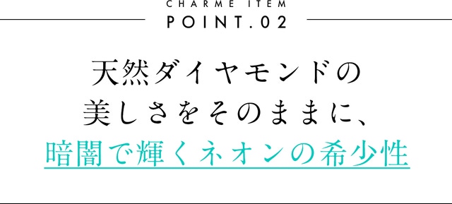 そんな憧れのダイヤモンドの新たな楽しみ方!身に着けるだけで、2つの輝きを楽しめる天然ダイヤモンド。それが「ネオンダイヤ」です。