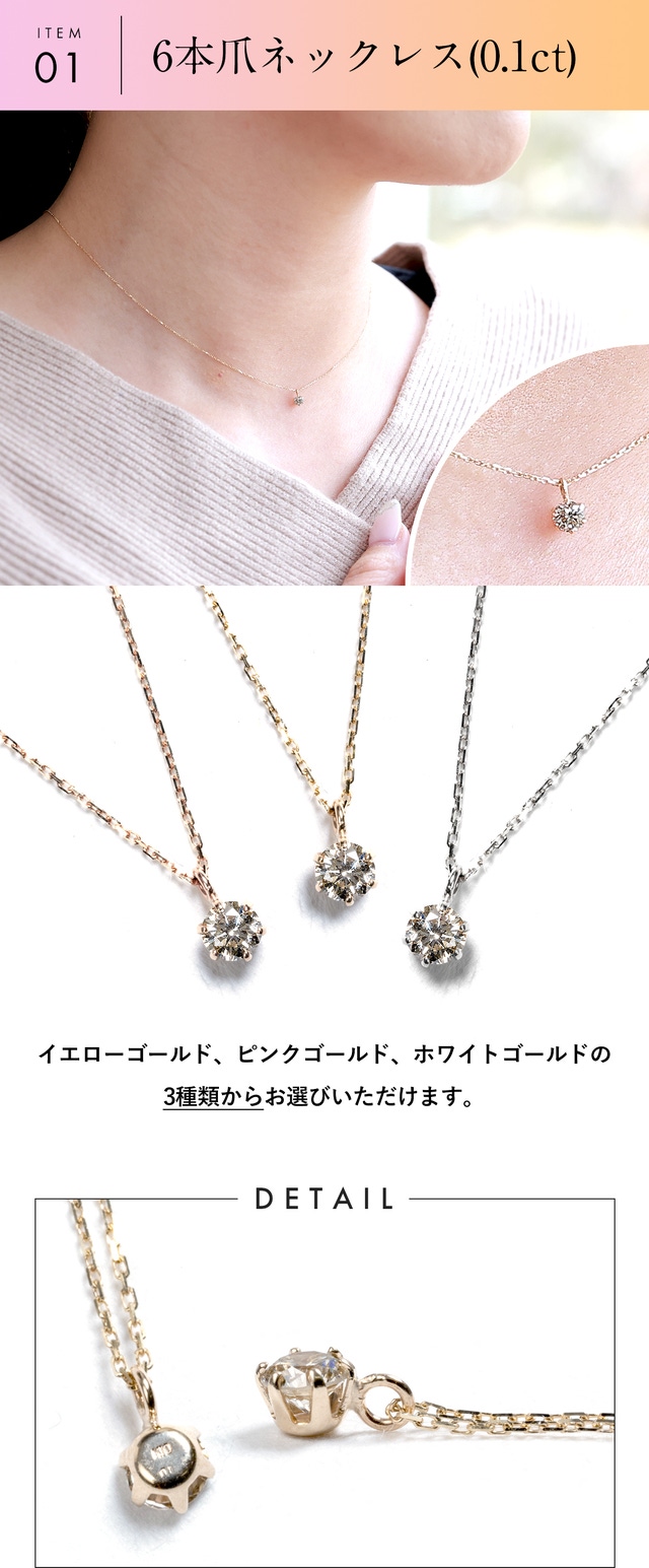 【Makuake割】ネオンダイヤ 0.1ct 6本爪ネックレス n1