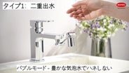 2つのタイプは基本構造(アーム、素材、節水機能など)こそ共通ですが、異なる泡沫器を採用することで、それぞれに個性的な出水スタイルを実現しています。
