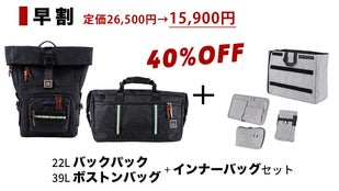【Makuake割35%オフ】ボストンバッグ+バッグパック+インナーバッグ
